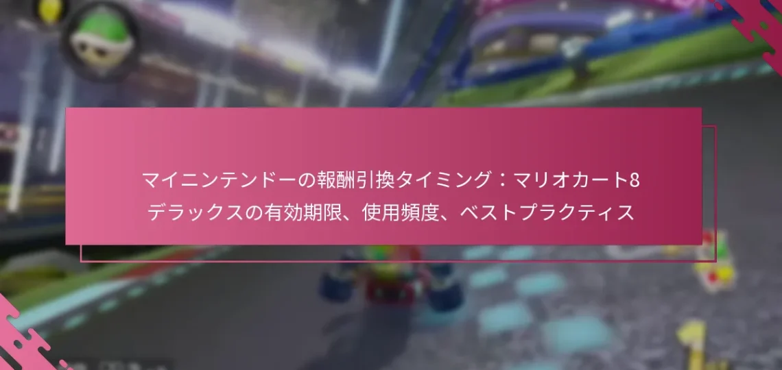 マリオカート8デラックスのためにマイニンテンドーの報酬を引き換える際は、各報酬タイプに関連する特定の有効期限に注意することが重要です。使用制限を理解し、ベストプラクティスに従うことで、報酬を最大限に活用し、ゲーム体験を向上させることができます。事前に計画を立て、情報を常に把握しておくことで、特に特別なイベント中に報酬を最大限に活用できます。 マリオカート8デラックスに関連するマイニンテンドーの報酬の有効期限は何ですか? マリオカート8デラックスのマイニンテンドーの報酬には、報酬の種類に応じて異なる特定の有効期限があります。これらの日付を把握しておくことは、報酬が期限切れになる前に引き換えられるようにするために重要です。 報酬の有効期限の概要 マイニンテンドーの報酬は通常、限られた寿命を持ち、数ヶ月から数年の範囲で変動します。有効期限は、ポイントやデジタルアイテムなど、報酬の種類によって異なる場合があります。これらのタイムラインを理解することで、引き換えを効果的に計画できます。 報酬は、発行日またはアカウントに最後にアクセスした日によって期限切れになる場合があります。定期的に報酬を確認することで、機会を逃すことを防げます。 異なる報酬ティアの具体的な有効期限 マイニンテンドーは、各報酬ティアに異なる有効期限を持つさまざまな報酬ティアを提供しています。例えば、ゴールドポイントは通常、12ヶ月の非活動後に期限切れになりますが、プラチナポイントは通常、最大24ヶ月まで持続することがあります。ゲームの割引などのデジタル報酬には、発行時に通常記載されている特定の有効期限があります。 ゴールドポイント:12ヶ月の非活動後に期限切れ。 プラチナポイント:通常、24ヶ月持続。 デジタル報酬:発行時に特定の有効期限を確認。 今後の有効期限を追跡する方法 マイニンテンドーの報酬の有効期限を追跡するには、定期的にマイニンテンドーアカウントにログインしてください。ダッシュボードでは、ポイントとそれぞれの有効期限の明確な概要が提供されます。さらに、報酬が期限切れになる1ヶ月前にカレンダーにリマインダーを設定することを検討してください。 スプレッドシートを使用して報酬とその有効期限を記録することも実用的なアプローチです。これにより、どの報酬に早急に注意が必要かを簡単に視覚化できます。 有効期限を逃した場合の影響 マイニンテンドーの報酬の有効期限を逃すと、貴重なポイントや割引を失うことにつながります。一度期限切れになると、これらの報酬は回復できず、将来の購入における節約の機会を逃す可能性があります。 さらに、頻繁な期限切れは、マイニンテンドープログラムへの全体的な関与を減少させ、将来的に報酬を獲得する能力に影響を与える可能性があります。 タイムリーな引き換えのための戦略 マイニンテンドーの報酬をタイムリーに引き換えるためには、定期的にアカウントを確認するスケジュールを作成してください。望ましい報酬のために十分なポイントを蓄積したら、最後の瞬間まで待つのではなく、すぐに引き換えることを目指しましょう。 特に期限が近い報酬を優先することを検討してください。この積極的なアプローチは、報酬の価値を最大化し、失うリスクを最小限に抑えるのに役立ちます。 毎月アカウントを確認して更新情報をチェック。 重要な有効期限のためにカレンダーリマインダーを設定。 最後の瞬間の慌てを避けるために早めにポイントを引き換え。 マリオカート8デラックスのためにマイニンテンドーの報酬をどのくらいの頻度で引き換えられますか? マリオカート8デラックスのためにマイニンテンドーの報酬を何度も引き換えることができますが、特定の制限やガイドラインに留意する必要があります。これらのルールを理解することで、報酬を最大限に活用し、ゲーム体験を向上させることができます。 報酬の引き換え頻度の制限 マイニンテンドーは、報酬を引き換える頻度に特定の制限を設けています。通常、マリオカート8デラックスの報酬は、対象となる購入またはイベントごとに1回引き換えることができます。つまり、複数の報酬がある場合は、各取引でどの報酬を使用するかを賢く選ぶ必要があります。 さらに、一部の報酬には有効期限があり、引き換えの頻度に影響を与える可能性があります。各報酬に関連する特定の条件を常に確認して、機会を逃さないようにしましょう。 報酬ティアとその使用の理解 マイニンテンドーの報酬は異なるティアに分類されており、それぞれ異なる特典を提供しています。上位ティアの報酬は通常、より多くのポイントを必要としますが、独占的なゲーム内アイテムや将来の購入に対する割引など、より大きな価値を提供します。 これらのティアの使用を戦略的に考えることが重要です。例えば、マリオカート8デラックスを頻繁にプレイする場合は、下