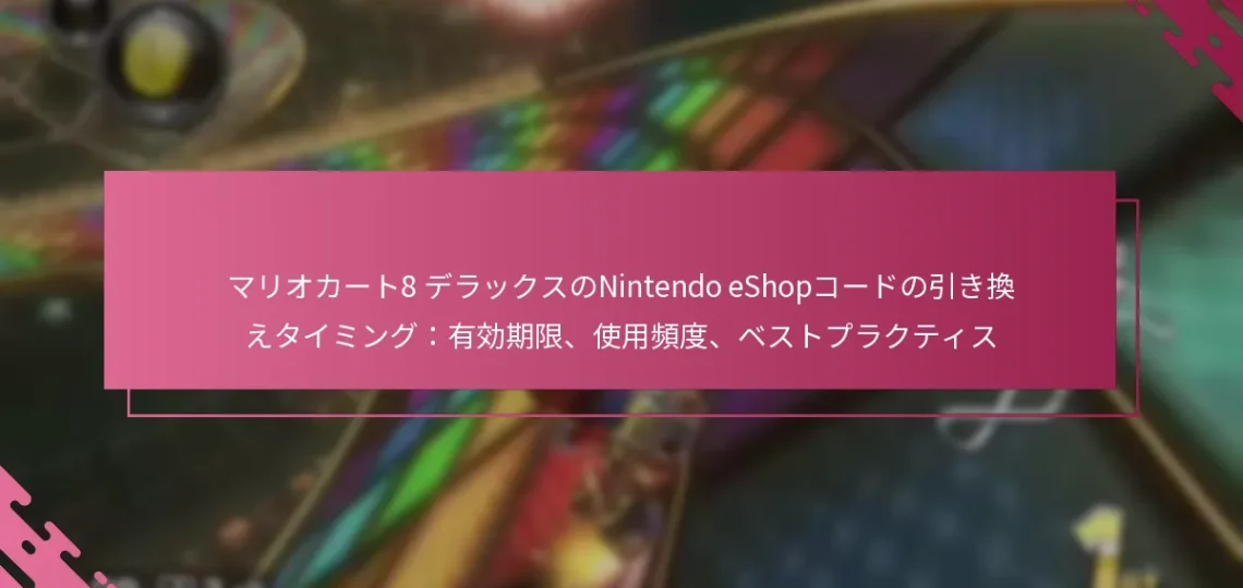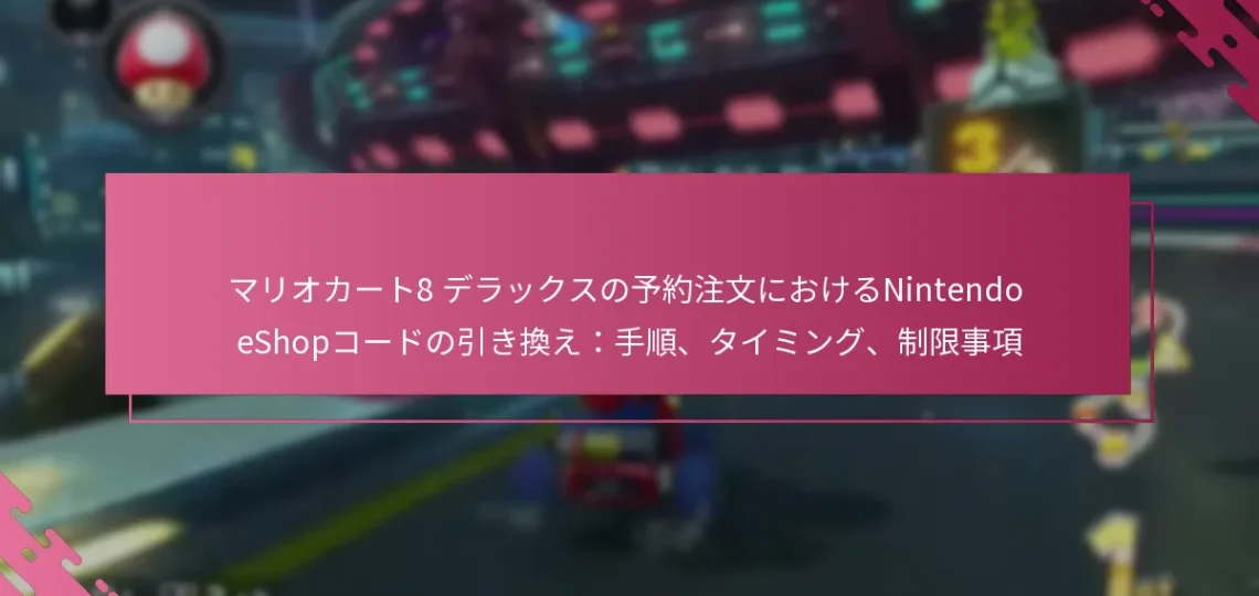 マリオカート8 デラックスの予約注文に対するNintendo eShopコードの引き換えは、プレイヤーが割引やボーナスにアクセスできるシンプルなプロセスです。予約注文後すぐにコードを入力できますが、ボーナスの有効化はタイミングや地域の要因によって異なる場合があります。予約注文に適用される地理的制限や有効期限などの制約に注意してください。 マリオカート8 デラックスの予約注文に対するNintendo eShopコードの引き換えプロセスは? マリオカート8 デラックスの予約注文に対するNintendo eShopコードを引き換えるには、eShopにコードを入力するという簡単なプロセスに従います。これにより、予約注文に関連する割引やボーナスを受け取ることができます。 eShopコード引き換えのステップバイステップガイド 1. Nintendo Switchを起動し、ホーム画面からNintendo eShopに移動します。 2. プロンプトが表示された場合はユーザープロファイルを選択し、左のサイドバーの一番下までスクロールして「コードを入力」を選択します。 3. 16文字のeShopコードを慎重に入力し、誤字がないことを確認します。 4. 入力内容を確認し、画面の指示に従って引き換えプロセスを完了します。 5. 成功すると、確認メッセージが表示され、予約注文があなたのアカウントにリンクされます。 eShopでのコード入力セクションの場所 コード入力セクションはNintendo eShopのインターフェース内にあります。eShopを起動した後、左のサイドバーの一番下にある「コードを入力」オプションを探してください。 このセクションはどのユーザープロファイルからでもアクセスできるため、どのアカウントを使用していてもコードを引き換えるのが簡単です。プロセスがスムーズに進むように、インターネットに接続されていることを確認してください。 コード引き換えに必要な条件 eShopコードを正常に引き換えるには、Nintendo Switchが最新のソフトウェアバージョンに更新されていることを確認してください。古いシステムではコードの入力や処理ができない場合があります。 また、コードが有効であり、期限切れでないことを確認してください。予約注文用のコードには通常、特定の有効化日がありますので、購入に関連する条件を確認してください。 最後に、Nintendoアカウントが正常であり、コードが残高調整を必要とする場合は十分な資金があることを確認してください。 コード引き換えの一般的なトラブルシューティングのヒント eShopコードの引き換え中に問題が発生した場合は、まずコードを正しく入力したか再確認してください。誤字は簡単にエラーを引き起こす可能性があります。 コードが拒否された場合は、その有効性と有効期限を確認してください。コードがまだ有効であれば、Nintendo Switchを再起動して再度引き換えを試みてください。 問題が解決しない場合は、Nintendoサポートに連絡して、特定の状況に応じたガイダンスを受けることを検討してください。 引き換えプロセスの視覚的補助 スクリーンショットやビデオチュートリアルなどの視覚的補助は、コード引き換えプロセスの理解を大いに助けることができます。多くのゲーム関連のウェブサイトやフォーラムでは、eShopのナビゲートを助けるための画像付きのステップバイステップガイドを提供しています。 さらに、Nintendoの公式ウェブサイトでは、コードの入力方法を視覚的に示すビデオウォークスルーが提供されている場合があり、これにより簡単に従うことができます。 これらのリソースを活用することで、混乱するステップを明確にし、スムーズな引き換え体験を確保できます。 マリオカート8 デラックスのためのNintendo eShopコードはいつ引き換えられますか? マリオカート8 デラックスのためのNintendo…